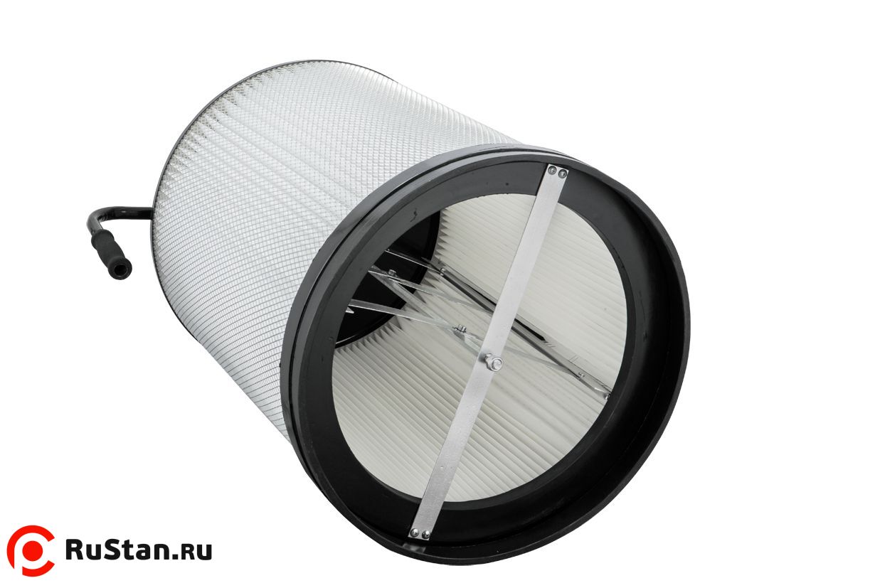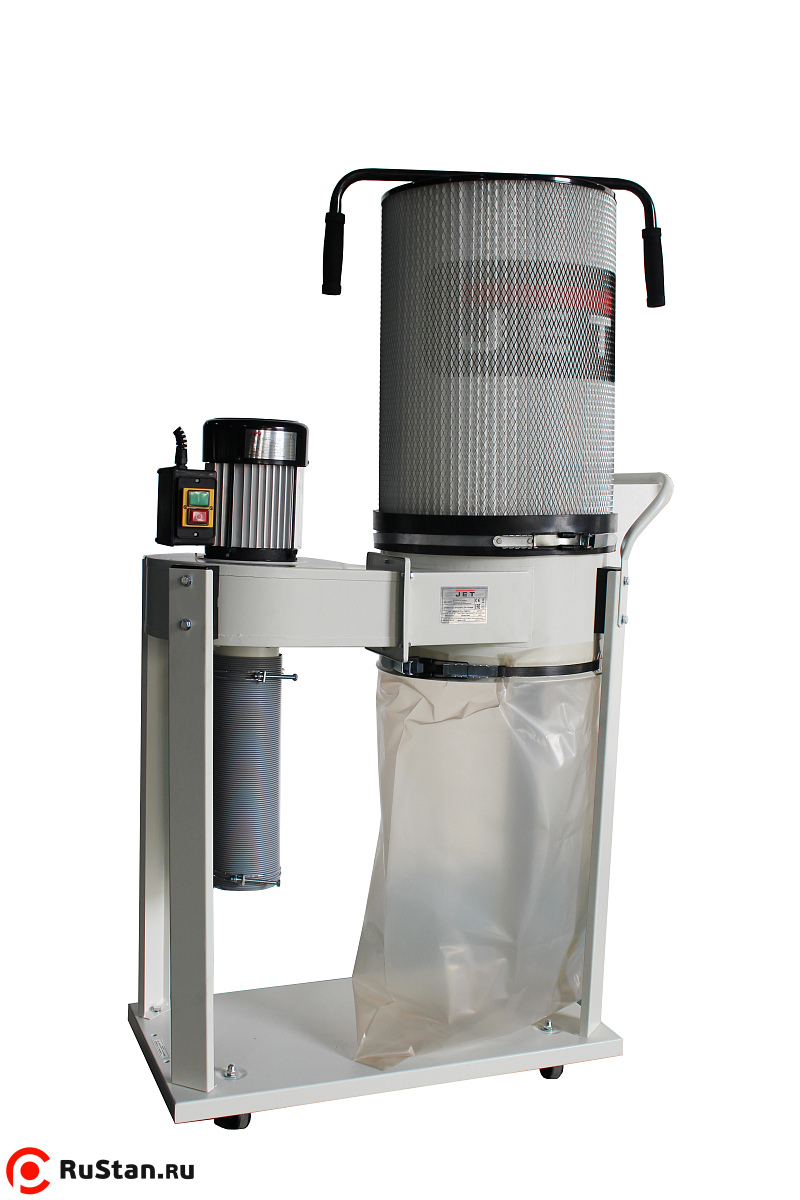Отведение пыли из потока происходит за счет создающегося внутри установки циклона и обратного давления. Вращение воздуха с определенной скоростью и давление внутри и создают условия для всего процесса целиком. Другими словами вытяжная установка с одной стороны создает разряжение, чтобы забрать поток от станка и выдавливает этот поток с другой стороны через фильтрующий элемент.