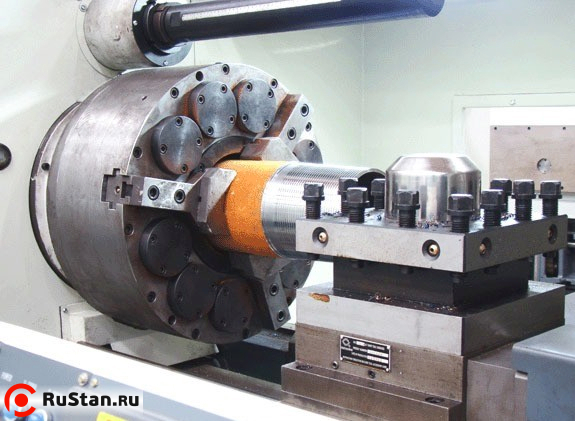 - Разработан на основе токарного станка с ЧПУ CKE61100M, отличается доработанной передней бабкой с увеличенным до 205 мм проходным отверстием шпинделя и двойным гидравлическим трубонарезным патроном для зажима трубы.