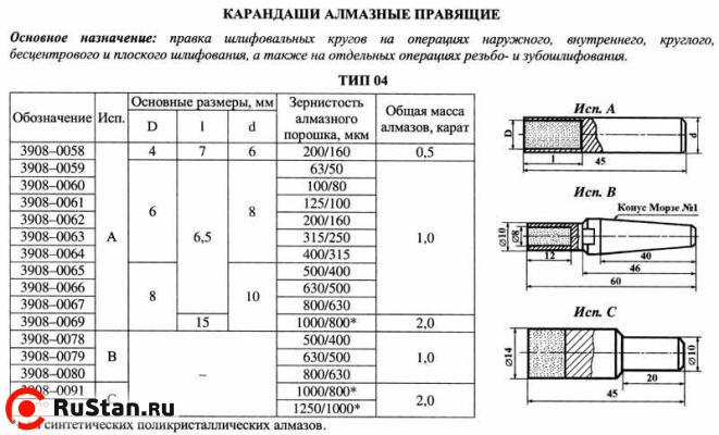 Карандаш алмазный 3908-0064, тип 04, исп.А, А3, 400/315, 1,0 карат "Терек" |