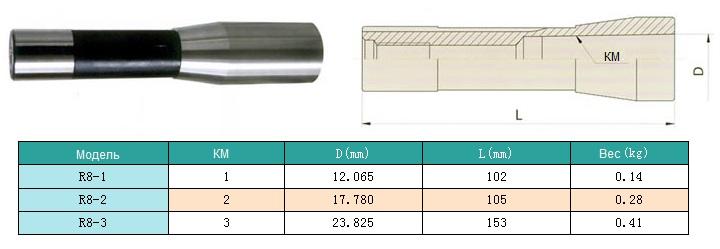 Втулка переходная с хв-ком R8 (7/16"- 20UNF) на КМ1 с отверстием под клин "CNIC"