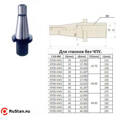 Хвостовик с конусом NT 7:24 ГОСТ 25827-93 исполнение 1 - применяется на станках с ручной сменой инструмента (без ЧПУ), соответствует исполнению по DIN 2080.