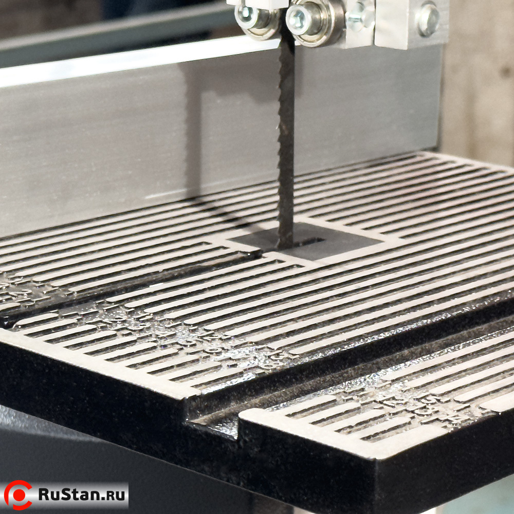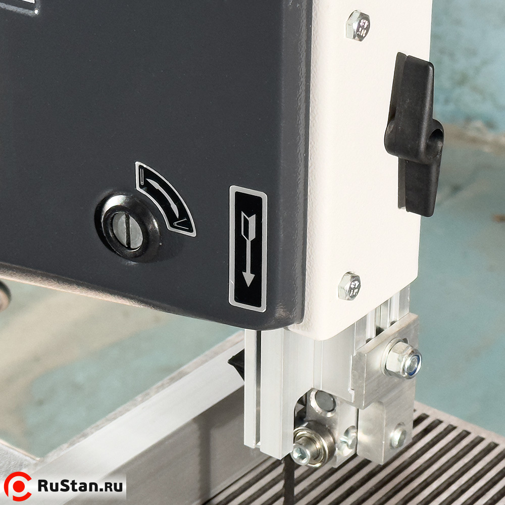 Для точной обработки большого количества одинаковых изделий в комплекте ленточной пилы имеются упор с линейкой и транспортир, с помощью которых устанавливается длина обрабатываемого изделия и угол среза на нём