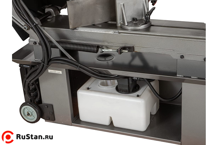 Моторная группа состоит из мощного электродвигателя - 1,1 кВт, обеспечивающего стабильную работу ленточного станка в различных скоростных режимах. Ременная передача позволяет осуществлять пиление заготовок на скоростях движения ленточного полотна в 26, 50, 73 и 95 м/мин. Управление работой станка осуществляется с пульта управления, установленного на консоли. Оборудование оснащено кнопкой аварийной остановки.