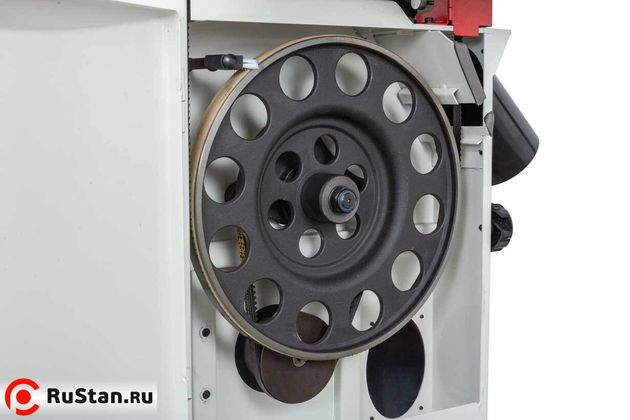 Механизм натяжения и центрирования ленты включает в себя две группы трехроликовых направляющих на шарикоподшипниках, стрелочный индикатор уровня натяжения, регулирующие маховики, два смотровых окошка и рычаг быстрого натяжения-ослабления. Чтобы улучшить плавность работы, использованы чугунные шкивы с массивным телом.