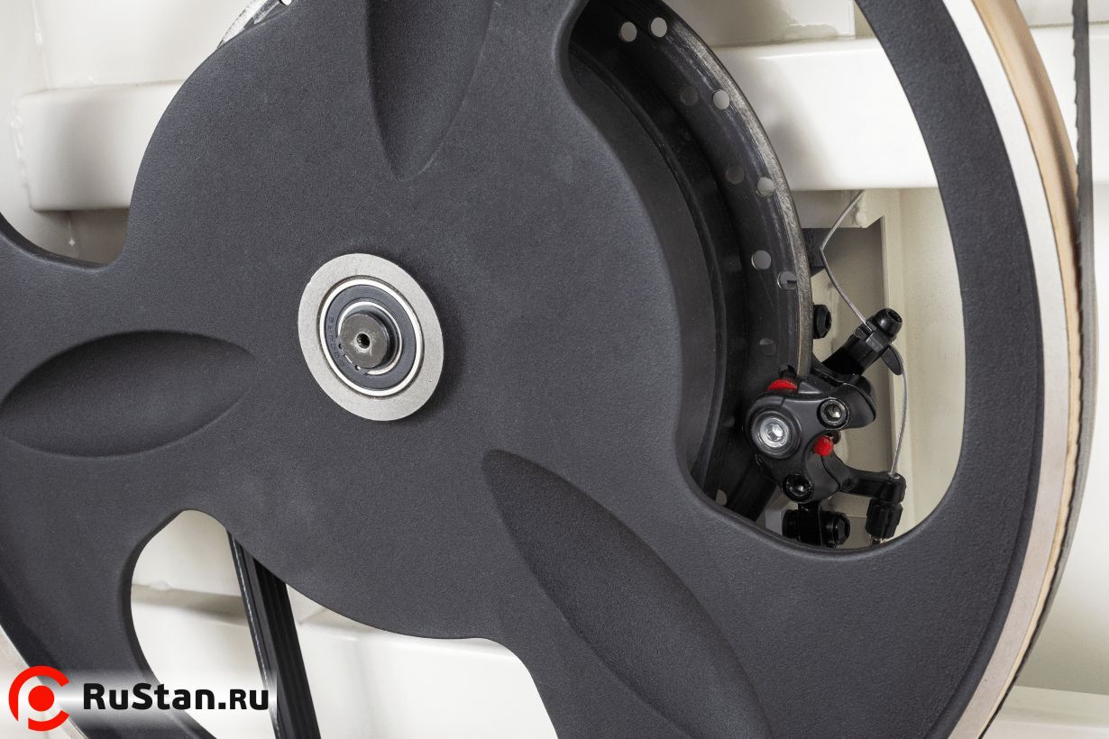 Станок оснащен комплексной системой безопасности с тормозным диском увеличенного диаметра, суппортом, педалью и концевым выключателем, обеспечивающей мгновенную остановку двигателя и пильного полотна в аварийной ситуации.