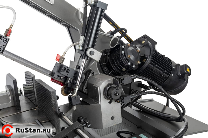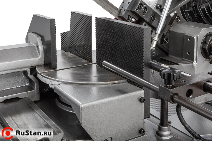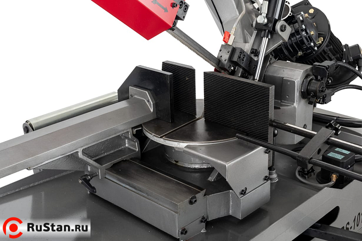 Модель MBS-1012DASP имеет регулируемую направляющую для регулировки прохода ленточного полотна в зависимости от формы заготовки и ее диаметра. Направляющие блоки осуществляют позиционирование полотна непосредственно под прямым углом к поверхности обрабатываемой заготовки. Максимальная стойкость ленточного полотна обеспечивается подачей СОЖ в зону резания.