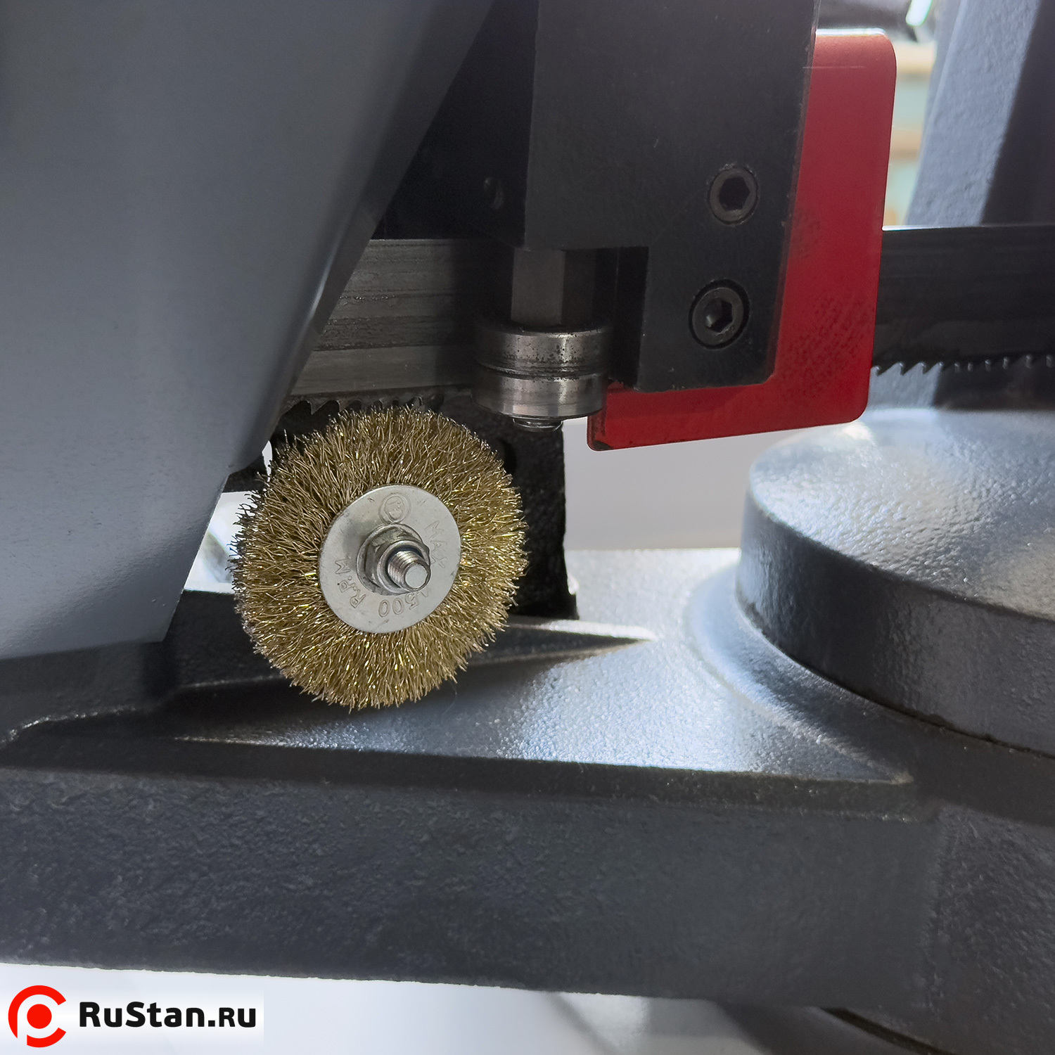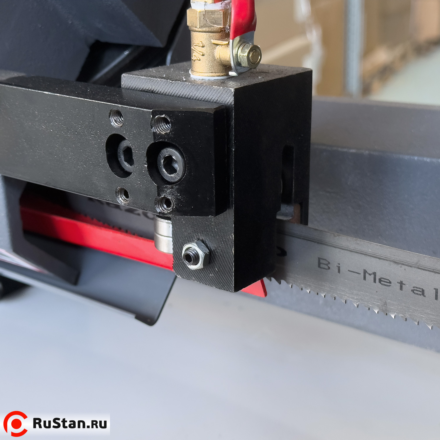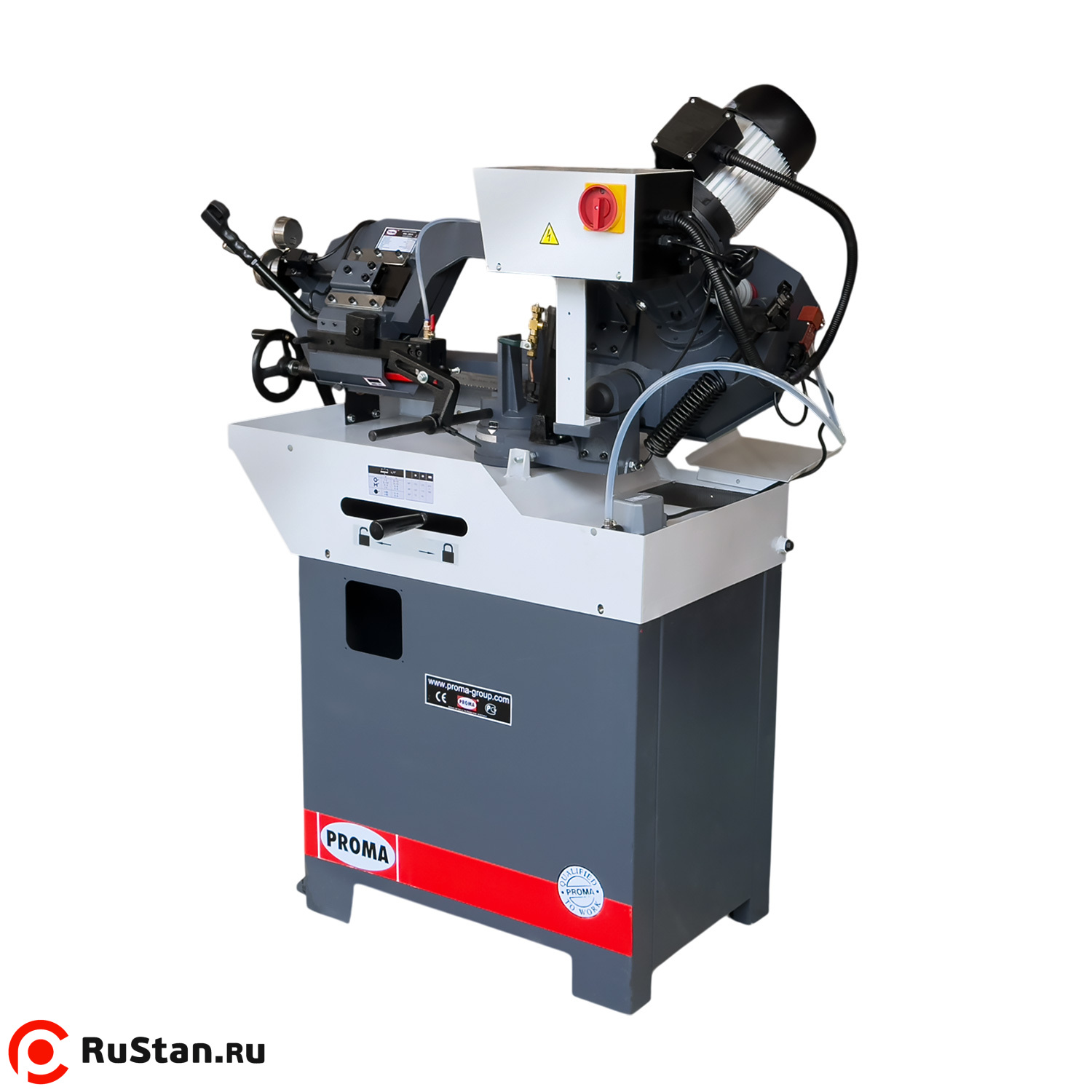 Cостоит из чугунных деталей с металлическими кожухами. Эта комбинация материалов обеспечивает достаточную жесткость станка при максимальном резе. Пилу можно настроить для резки под углом 90° / 60° / 45°. Пильная лента приводится в действие трёхфазным двигателем. Скорость опускания пильной рамы можно регулировать демпферным гидроцилиндром. Модель оснащена системой охлаждения СОЖ.