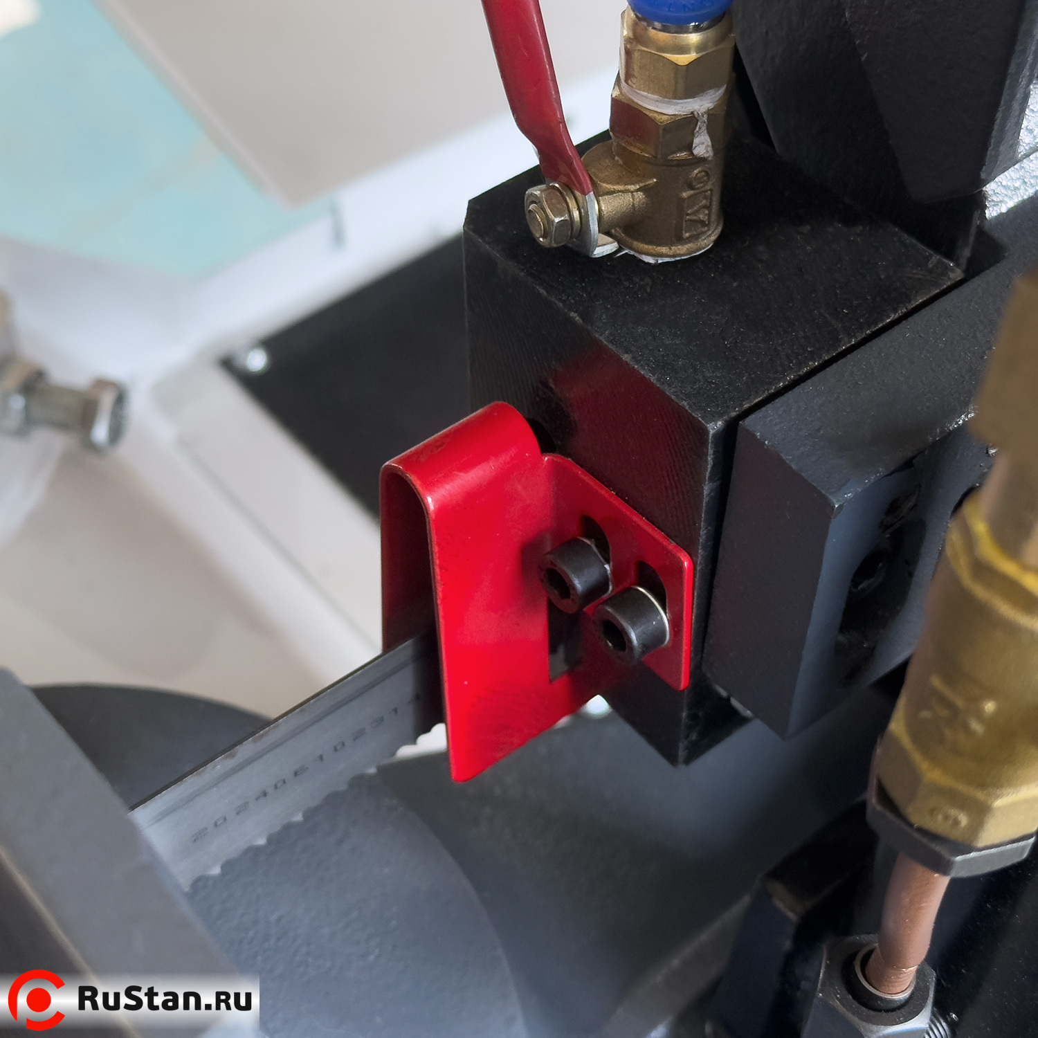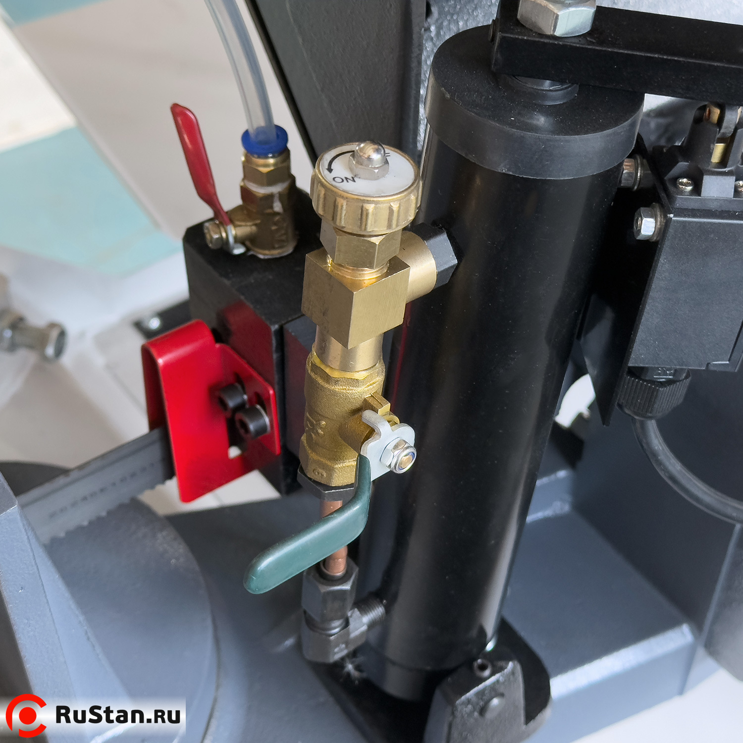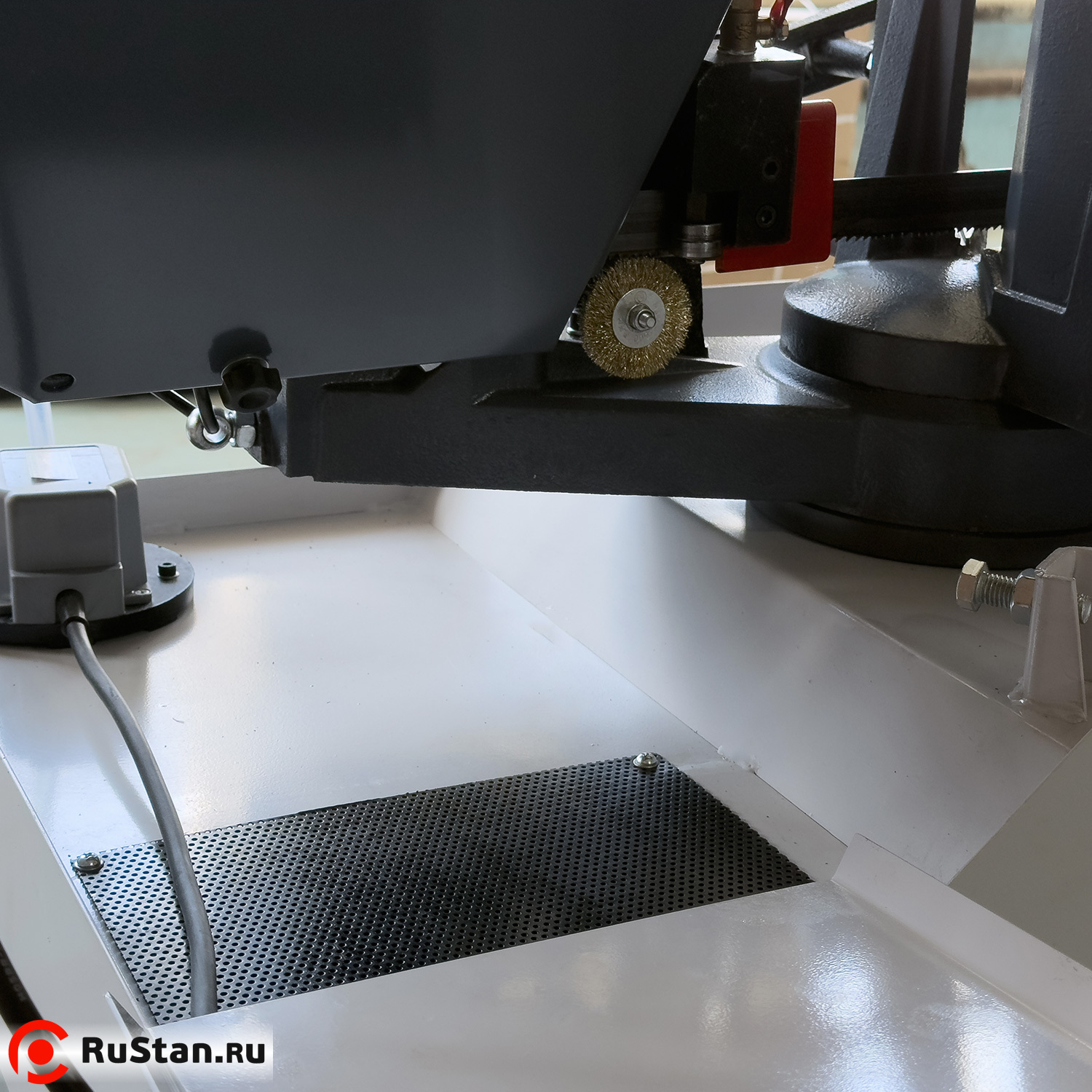 Cостоит из чугунных деталей с металлическими кожухами. Эта комбинация материалов обеспечивает достаточную жесткость станка при максимальном резе. Пилу можно настроить для резки под углом 90° / 60° / 45°. Пильная лента приводится в действие трёхфазным двигателем. Скорость опускания пильной рамы можно регулировать демпферным гидроцилиндром. Модель оснащена системой охлаждения СОЖ.