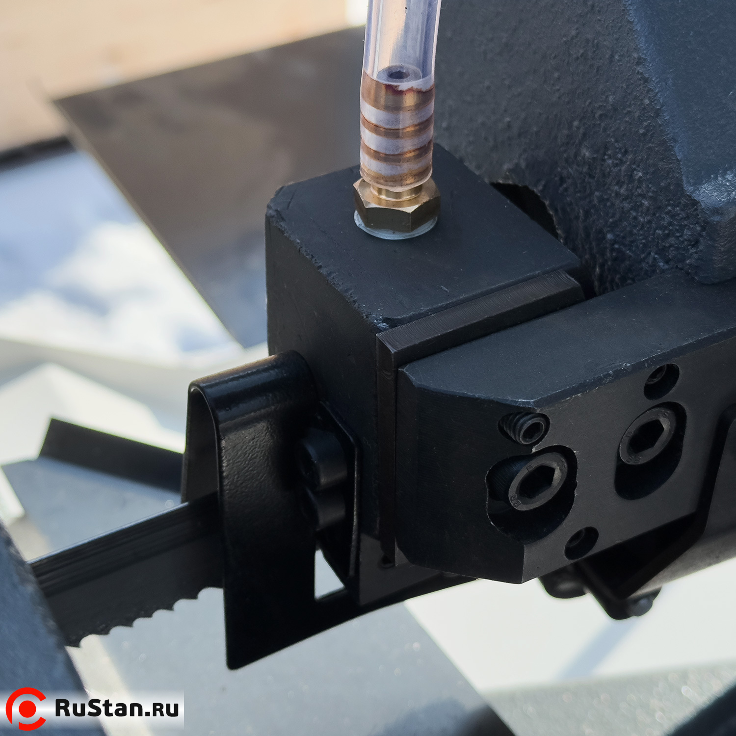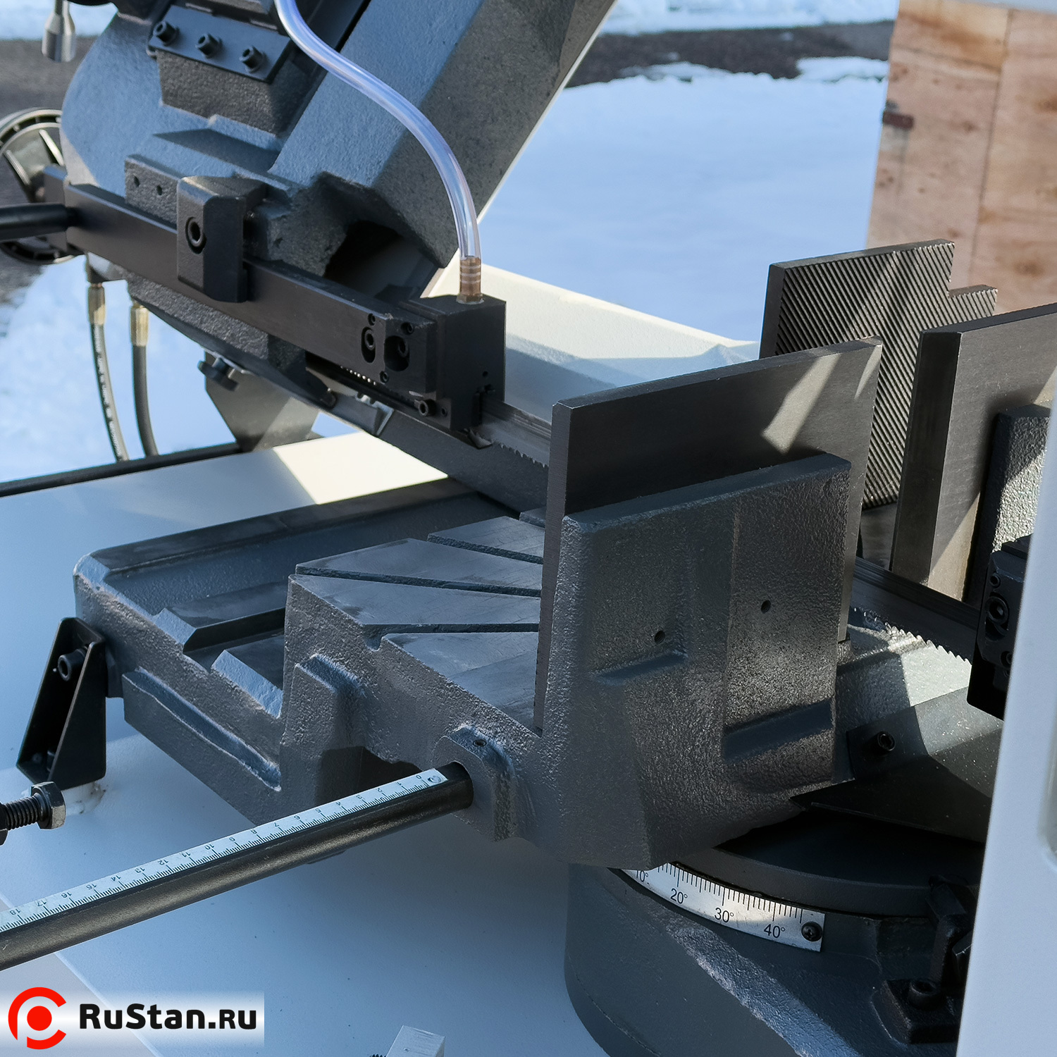 Станок состоит из чугунных деталей с металлическими кожухами. Эта комбинация материалов обеспечивает достаточную жесткость станка при максимальном резе. Пилу можно настроить для резки под углом 90°/60°/+/-45°. Пильная лента приводится в действие трёхфазным двигателем. Опускание пильной рамы регулируется гидроцилиндром. Модель оснащена системой охлаждения СОЖ.