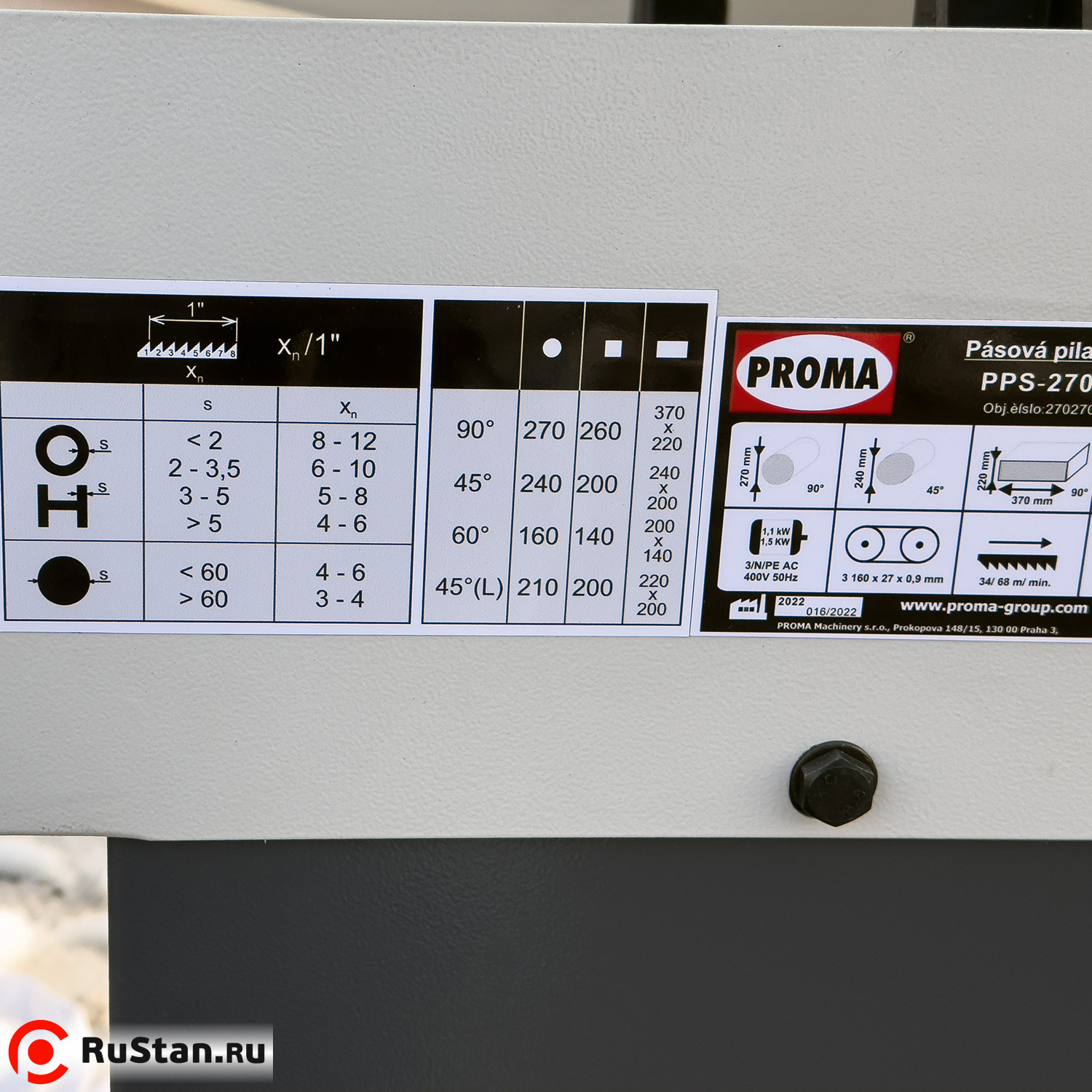Технические характеристики ленточнопильного станка Proma PPS-270HPA |