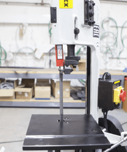 Пильную раму возможно установить в вертикальном положении для резки небольших изделий из дерева, пластмассы и других заготовок из мягких материалов (при этом станок обязательно должен крепиться к полу).