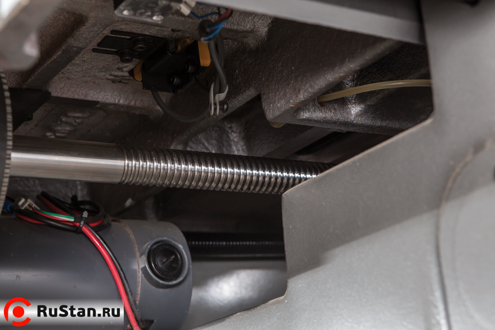Частота вращения шпинделя у этой модели - 2850 об/мин, имеется механизм его быстрого подъема. Предусмотрена автоматическая система смазки основных узлов и агрегатов, включая направляющие, а также подвод СОЖ в зону шлифовки. Во время шлифовки дисплей блока управления индицирует положение по оси Y, показывающее действительное положение шпинделя, также выводятся параметры начала отсчета, величины чернового шлифования, начальной точки чистового шлифования, заданная координата, точка подъема, периодичность выхаживания и т.п.