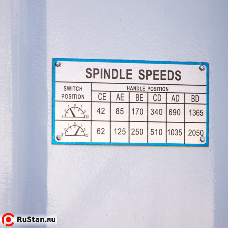 | Скорость вращения шпинделя | 42, 62, 85, 125, 170, 250, 340, 510, 690, 1 035, 1 365, 2 050 об/мин |