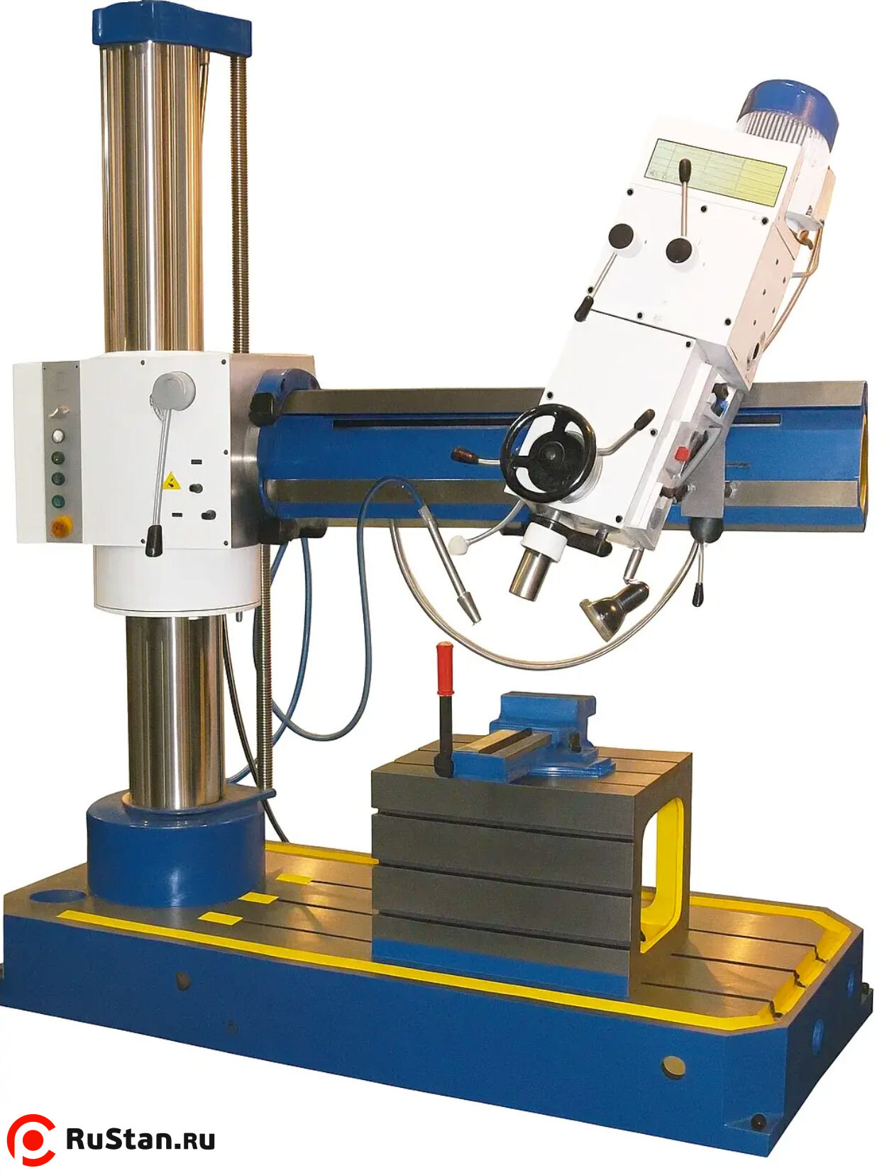 - Основанием станка является массивная литая плита, усиленная продольными и поперечными рёбрами жёсткости. В плите на подшипниках монтируется колонна, выполненная из стальной толстостенной трубы