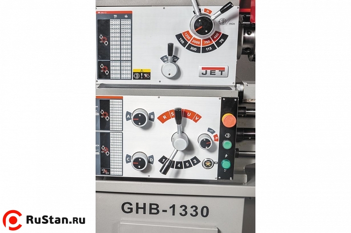 Следуя стандартам качества, компания JET оснащает свои токарные станки, включая и GHB-1330A, закаленными и тщательно отшлифованными направляющими станины, что повышает точность обработки и увеличивает срок службы оборудования. Шестерни передней бабки также закалены и отшлифованы. Их придется менять только лишь при переходе с нарезания метрической резьбы на дюймовую. С целью обеспечения непрерывного охлаждения, снижения уровня шума и увеличения ресурса механизм привода шпинделя помещен в масляную ванну. Станок оснащен механизмом автоматической подачи продольного и поперечного суппорта, а также регулируемой в поперечном направлении задней бабкой для обточки конических заготовок. Как и все станки этой линейки, GHB-1330A построен по двухвинтовой схеме: ходовой винт отвечает за резьбу, ходовой вал, отвечает за точение в автоматическом режиме. Также предусмотрен толчковый режим работы шпинделя для облегчения переключения режимов работы.
