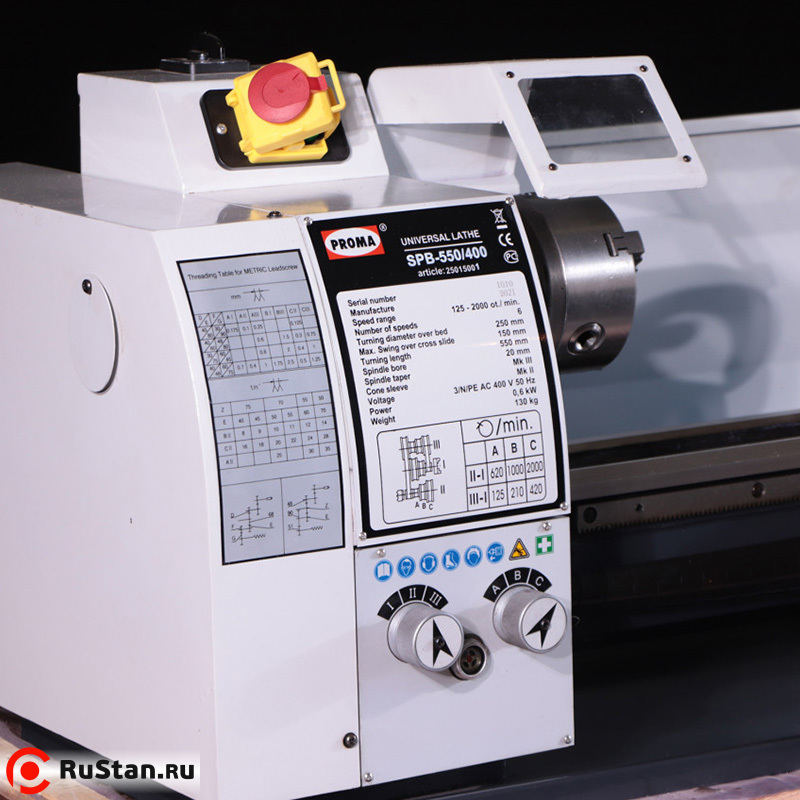 Универсальный токарный станок Proma SPB-550 предназначен для обработки преимущественно тел вращения путём снятия с них стружки при точении. На станке можно выполнять различные виды токарной обработки: обтачивание цилиндрических, конических, фасонных поверхностей, подрезку торцов, отрезку, растачивание, а также сверление и развёртывание отверстий, нарезание резьбы и накатку рифлений, притирку и т.п.