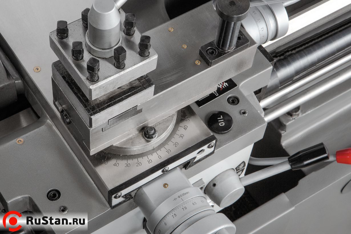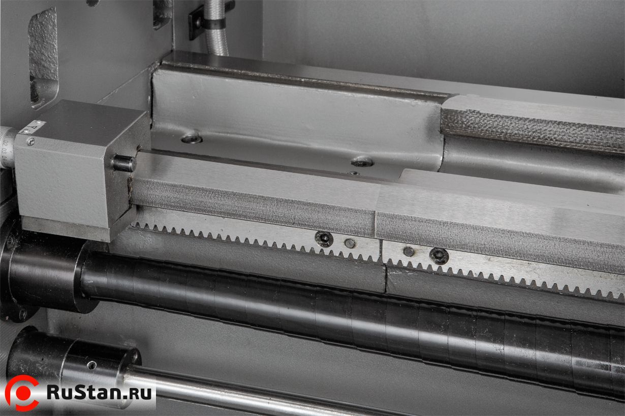 Фартук суппорта работает в масляной ванне, задняя бабка регулируется в поперечном направлении, что дает возможность обточки конических заготовок. Станок поставляется в максимальной комплектации. В нее входят система подача СОЖ, люнеты, планшайба, дополнительный 4-х кулачковый патрон, переходная втулка, вращающийся и не вращающийся центры, опоры для выставки станка, набор инструмента и лампа освещения рабочей зоны.