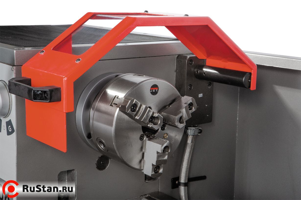 Многофункциональный универсальный токарно-винторезный станок JET GH-1440K на чугунном основании рассчитан на эксплуатацию промышленными предприятиями и крупными мастерскими, - там, где требуется особое качество и скорость обработки. Мощный асинхронный двигатель на 2,25 кВт способен обеспечивать работоспособность станка на протяжении всего рабочего дня. Станок полностью соответствует по ГОСТ 18097 классу точности «Н» - биение шпинделя не превышает 0,010 мм. На станке можно обтачивать детали диаметром до 356 мм над станиной, до 520 мм со снятым мостиком gap (длинна мостика 237 мм) и до 210 мм над суппортом.
