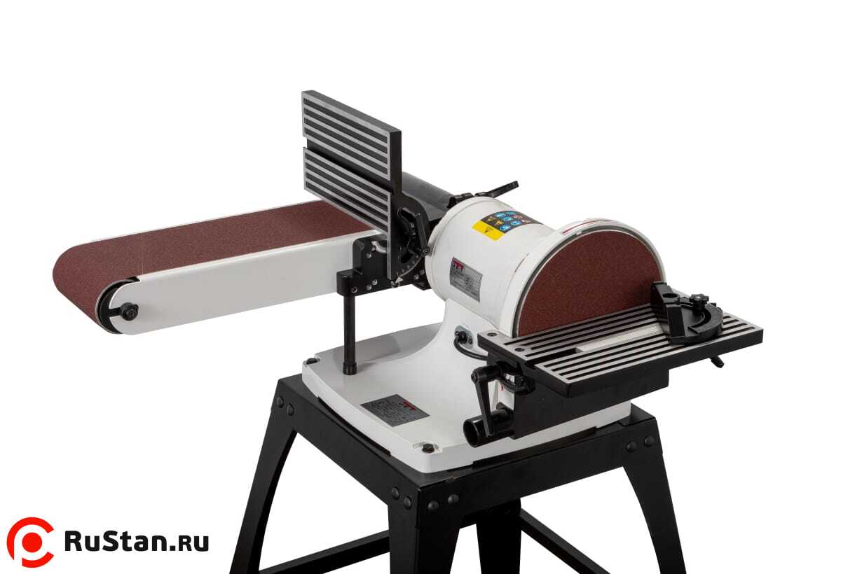 Это упростит смену шлифматериала. На ленточной стороне, в случае очень интенсивного использования, можно установить графитовую подложку. И одно и другое несложно поменять на новые, когда износятся. Станок создан для несложных, не слишком нагрузочных работ. Будет незаменим в небольших мастерских, столярных или слесарных. Можно разместить на верстаке или на открытой, стальной, напольной подставке, входящей в стандартный комплект поставки.