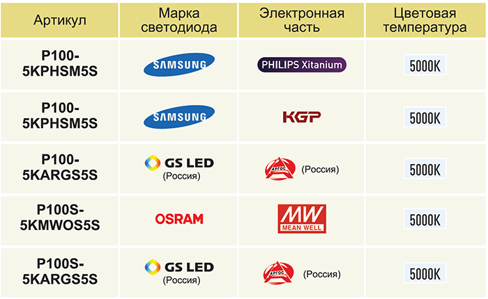 P100-5KPHSM5S: Мощность: 100 Ватт / Производительность: 13600 Лм / Цветовая температура: 5000K / Светодиод: Samsung / КСС: Д (120°) / Алюминий / Высокоэффективная электронная часть Philips / Защита от перенапряжения / Гальваническая изоляция / Соответствие ГОСТ, IEC / 176-264AC/250-370DC / 100 000 часов / 5 лет / 520x140x140 / Нетто: 3,7 Кг