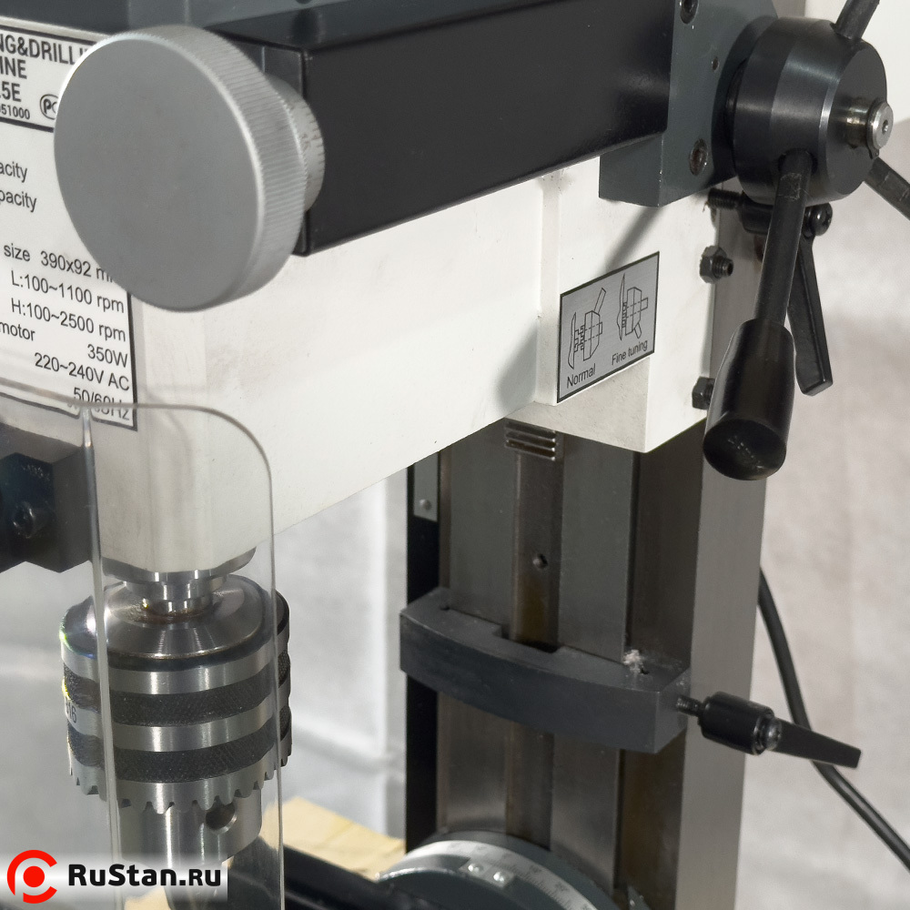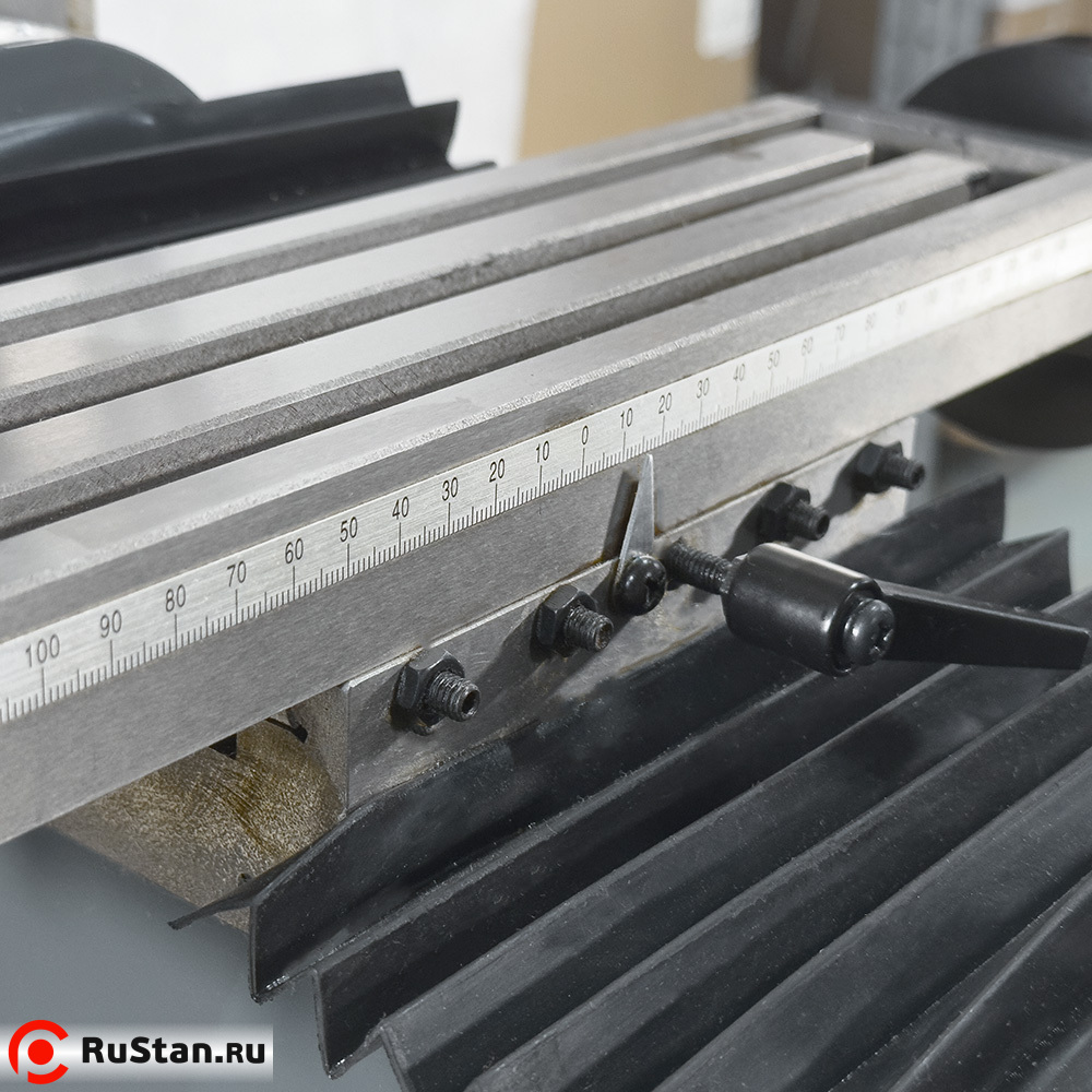 - Зажим ограничителя вертикального перемещения фрезерной головки.